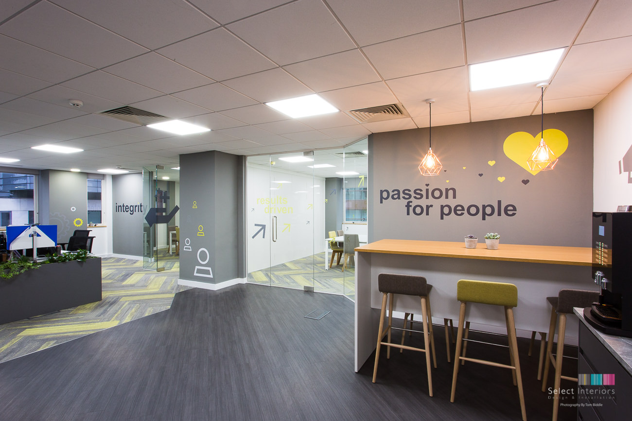 The project included full design, electrical, mechanical, AV equipment, flooring, decoration, bespoke setee. Boardroom tables, seating, graphics & internal planting scheme. Completed over a 3 week fit out programme with 4 weeks to manufacture all the bespoke furniture.