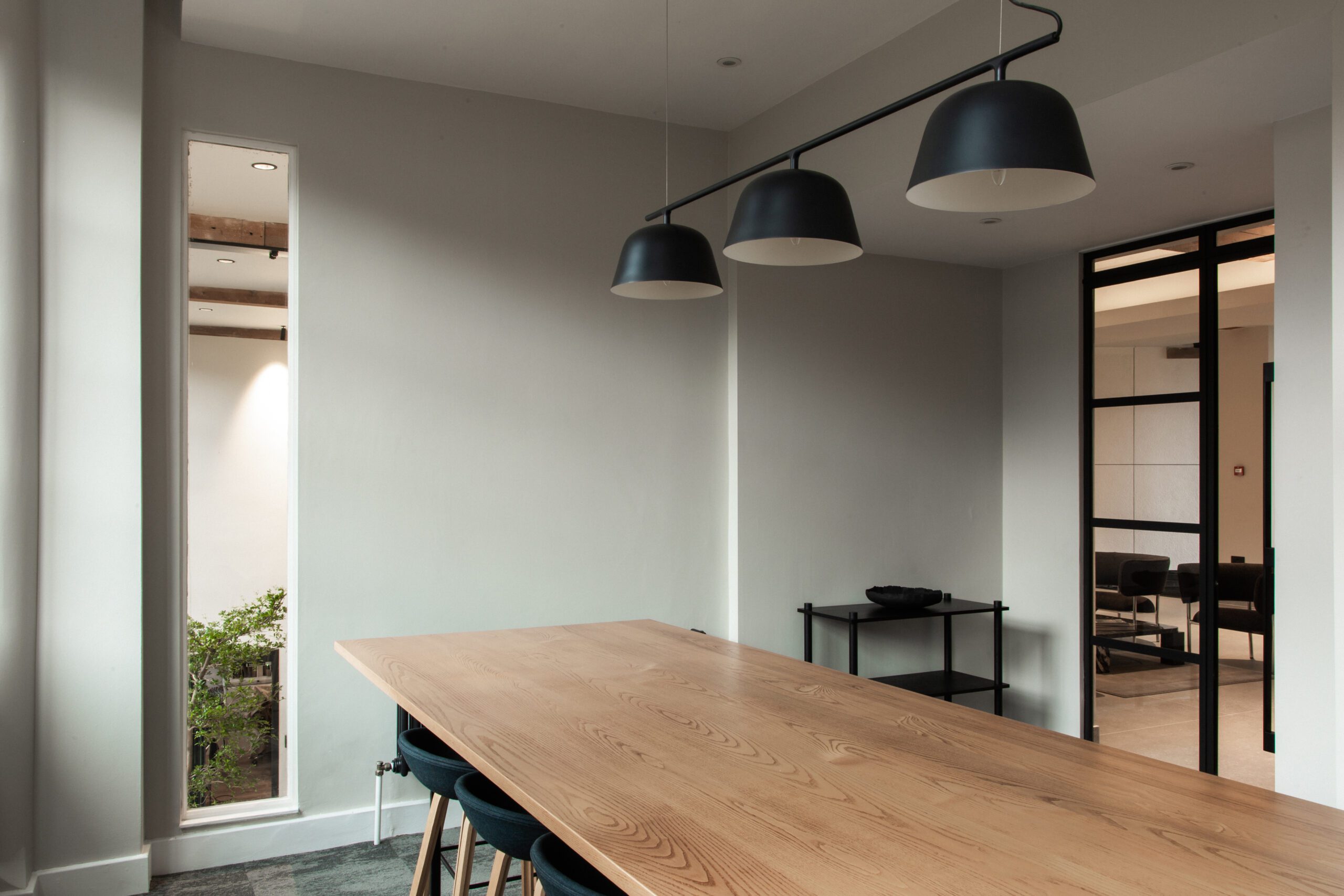 and formal meeting space with Crittall glazing and slim-line sliding screens.