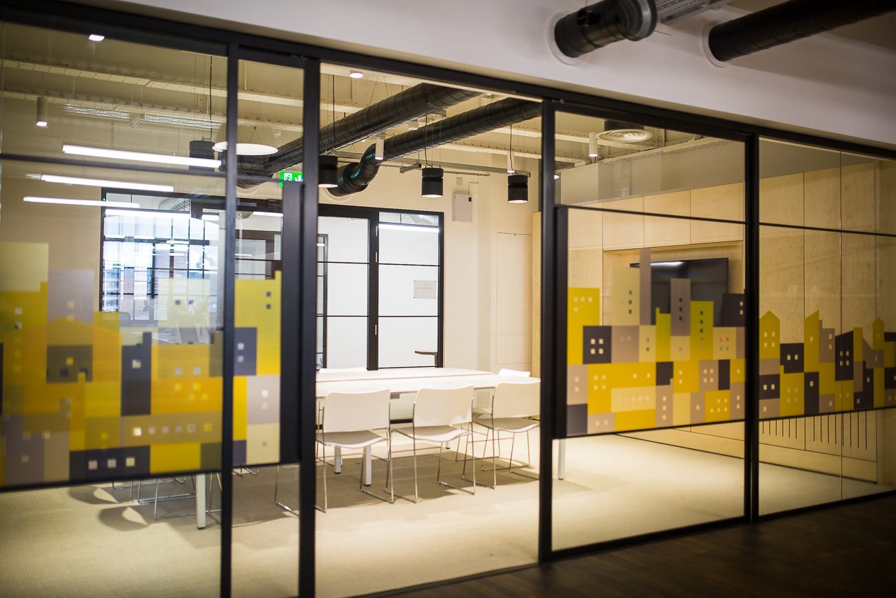 and formal meeting space with Crittall glazing and slim-line sliding screens.