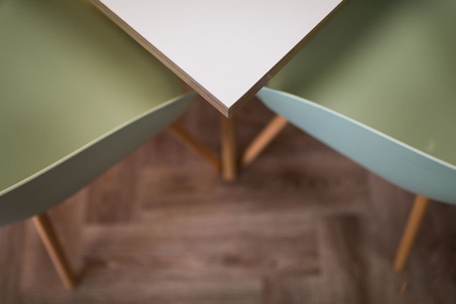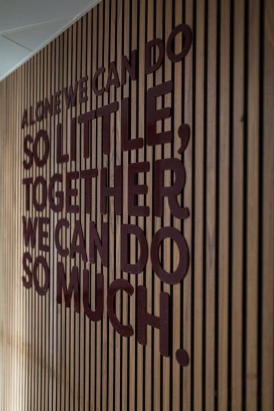 We were able to incorporate so much into the space including; a boardroom/formal meeting area for 18, which had the flexibility to open out and accommodate 24 for larger meetings and conferences. A small creative office for 6 with a circular table and scribble walls. A quiet calls space with 3 phone booths. An informal open plan meeting/planning space with soft seating. High table collaborative areas, desks for 32 staff. A bespoke bleacher seating presentation and staff development area for 48 people and a café/breakout area and an informal reception.