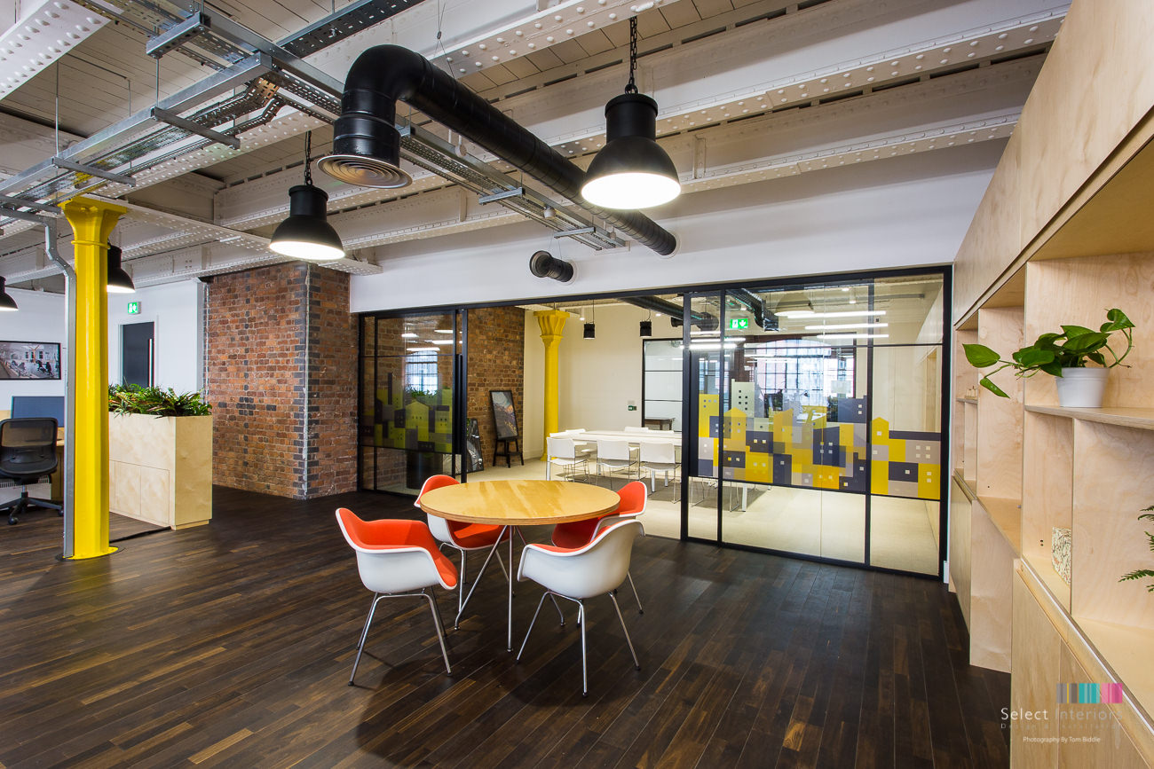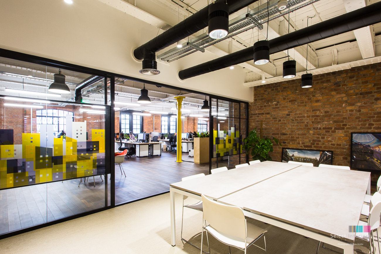 Levitt Bernstein Architects are a leading London based practice of architects, landscape architects and urban designers, that create award winning buildings, living landscapes and thriving urban spaces, using inventive design to solve real life challenges. Their work includes the ground-breaking design of the Royal Exchange Theatre and the RIBA award nominated No1 Spinningfields. and formal meeting space with Crittall glazing and slim-line sliding screens.